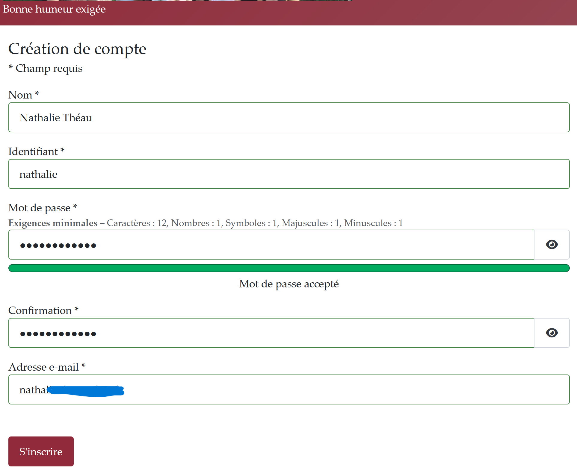 L'identifiant choisi est celui à utiliser lors dans le formulaire de connexion.