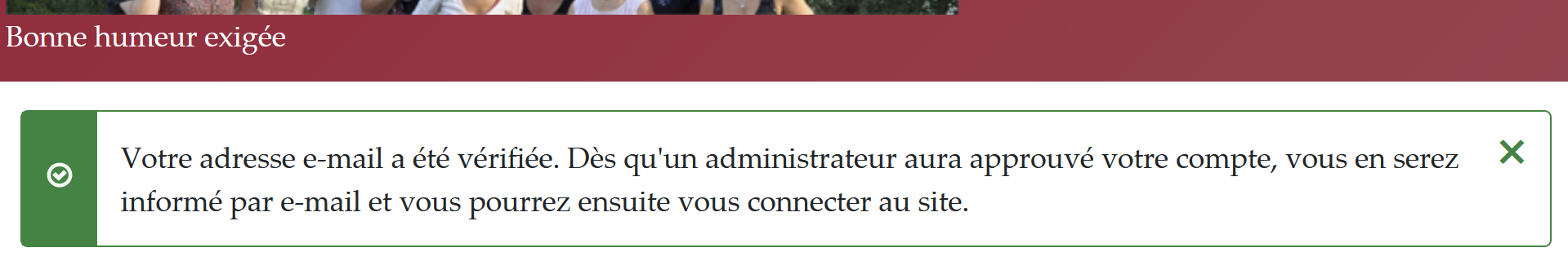 Une nouvelle page s'affiche pour confirmer que ton mail est valide.