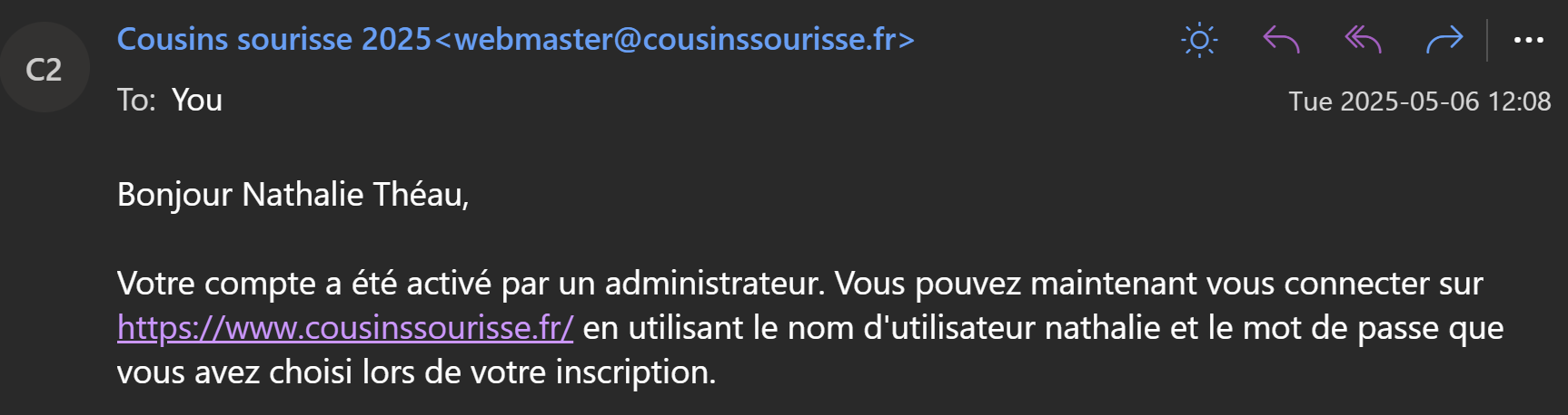 Une fois ton inscription confirmée, tu vas recevoir un message de confirmation.