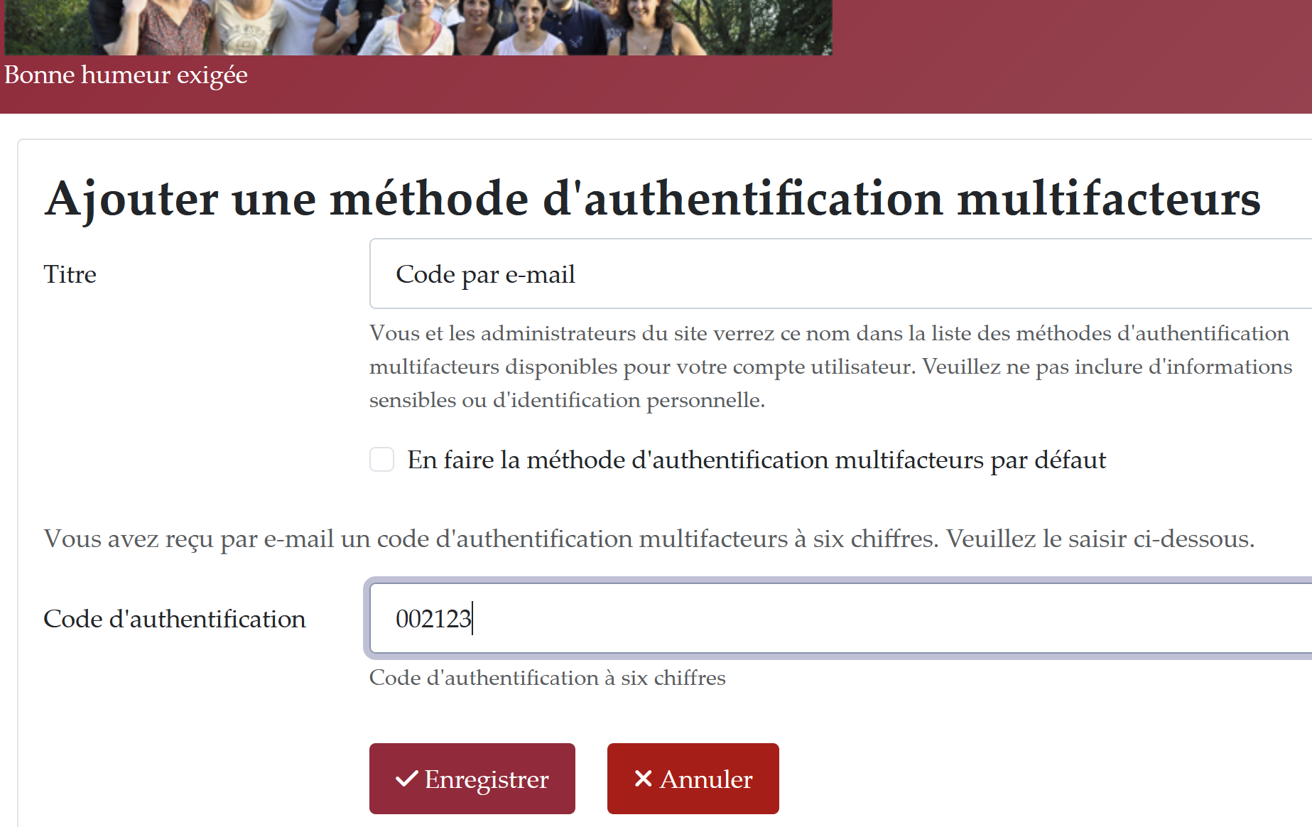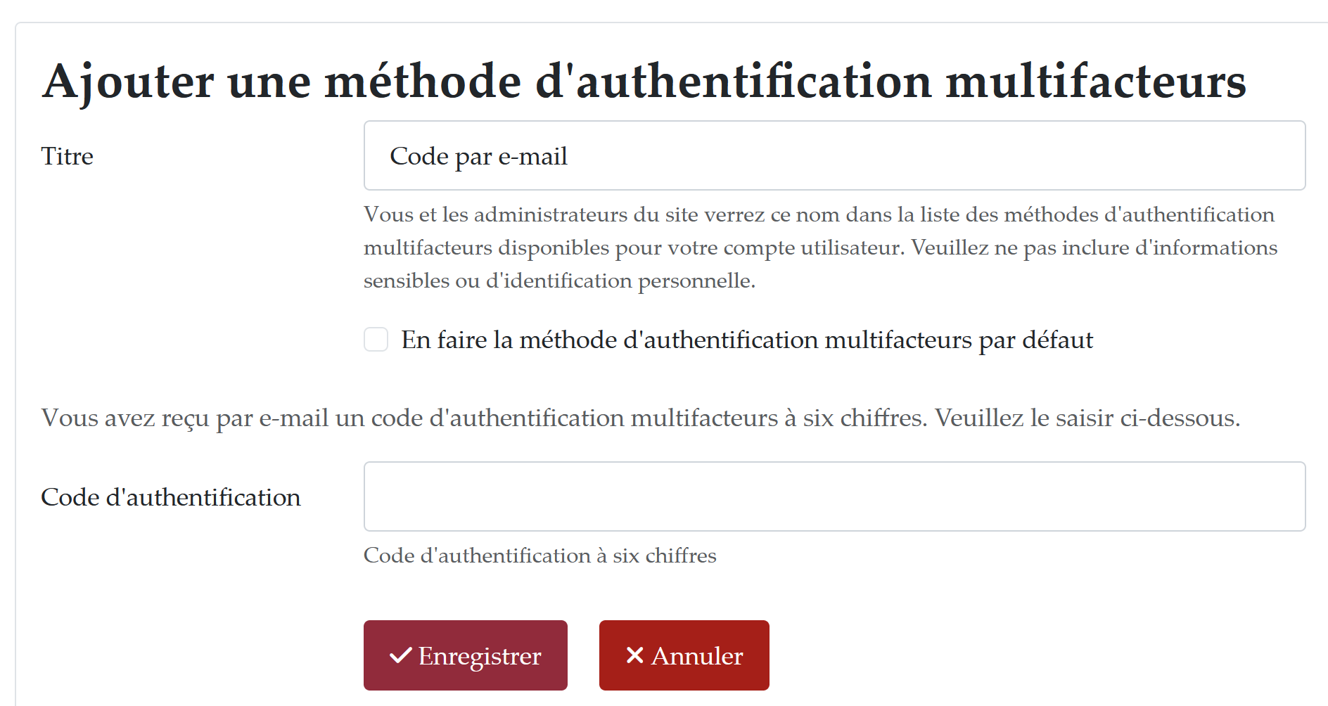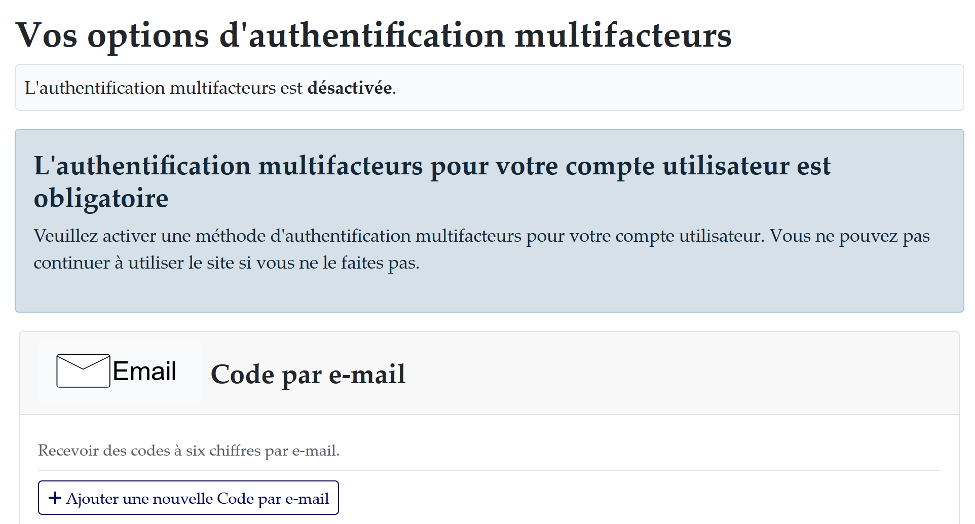 NB : D'autres modes d'authentification viendront plus tard comme l'utilisation d'application de génération de code comme google authenticator.